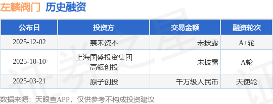 证券之星消息,根据天眼查APP于12月2日公布的信息整理,上海左麟阀门有限公司A+轮融资,融资额未披露,参与投资的机构包括襄禾资本。